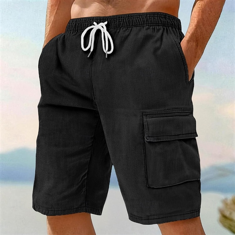 $23.99 - Men's Cargo Shorts Shorts Linen Shorts Summer Shorts Beach Shorts Drawstring Elastic Waist Plain Comfort Breathable Knee Length Outdoor Daily Beach Vacation Fashion Black White Inelastic 2025. Shop for cheap Holiday online? Buy at lightinthebox.com on sale today!