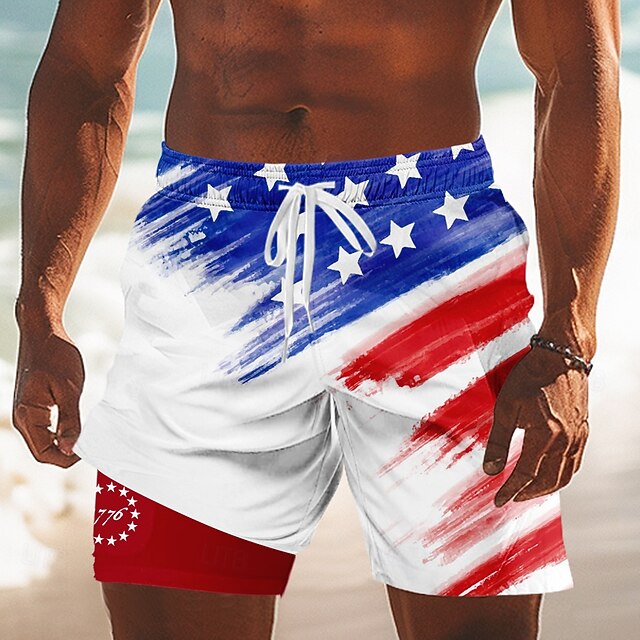 $21.99 - Independence Day Men's American US Flag Patriotic 1776 Lined Shorts 2 in 1 Board Shorts Swim Trunks Mid Waist Holiday Side Pockets With Compression Liner Elastic Drawstring Waist Designer Clothing 2025. Shop for cheap Flag Print online? Buy at lightinthebox.com on sale today!