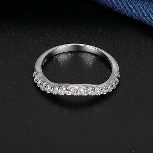 MDFUN Two-in-One Halo Engagement Rings Set for Women S925 Sterling Silver Faux Diamond Cubic Zirconia Wedding Promise Stackable Eternity Band Size 5-10 6
