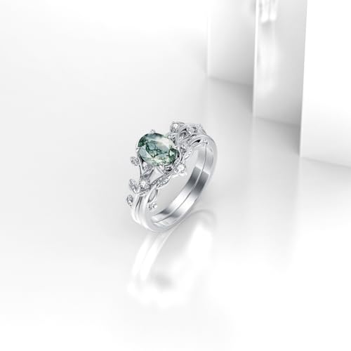 Ring size: Size 9Material: Sterling SilverMetal type: Sterling SilverGem type: AgateItem type name: Promise Rings【Dainty Design】: Natural moss agate symbolizes vitality and beautiful love. This Moss Agate Ring Set includes not only a stunning oval cut moss agate engagement ring but also matching leaves rings, the rich colors of water grass agate can show charm and represent vitality, especially suitable for women to wear.【Natural Moss Agate】: Every moss agate is natural, No two moss agate stones are the same, making each one unique. It is normal that the finished ring won't be the same as our picture. Moss agate inlaid on sterling silver ring brings you a different visual experience.【Material】: Stone Size :6*9mm Oval Cut. It is made of premium real S925 sterling silver and moss agate, Nickel-free, Lead-free, Cadmium-free, not easy to break and change color, hypoallergenic. The surface is polished with high-precision polishing technology to make the surface smooth and Brilliant. Very suitable for long time wear.【Ideal Gift】: Natural Moss Agate Ring will come with a elegant gift box, a perfect gift for mom, lover, grandparent, wife, family member and friends in birthday, wedding, anniversary, Christmas, graduation, Mother's Day, Valentine's Day.【Guarantee for you】: Our ultimate goal is to keep everyone being happy with shopping at LUYONA. If there is any problem on purchase, welcome to contact us, we are dedicated to giving you a terrific experience at all times. Perfect for everyday use. High quality materials and excellent craftsmanship ensure long-lasting durability.