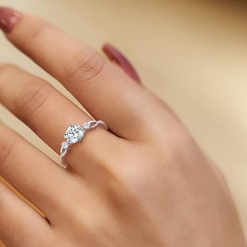 VOLUKA White Gold Plated 925 Silver Moissaite Ring For Women 0.5CT - 1CT Lab Diamond Promise Ring Wedding Engagement Silver Moissanite Ring 4
