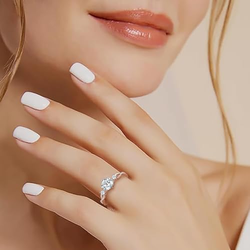 VOLUKA White Gold Plated 925 Silver Moissaite Ring For Women 0.5CT - 1CT Lab Diamond Promise Ring Wedding Engagement Silver Moissanite Ring 5