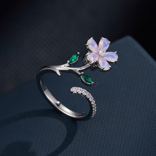 Why Choose Kokoma Spinner Cherry Blossom Flower Ring for Women Pink Opal Cubic Zirconia Floral Leaf Wrap Finger Band Open Statement Rings Eternity Promise Rings Bands Christmas Jewelry?