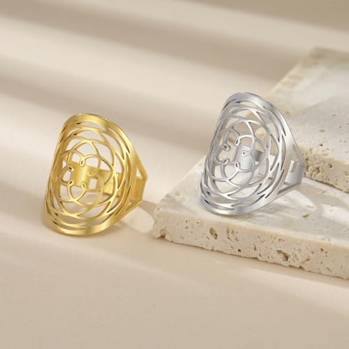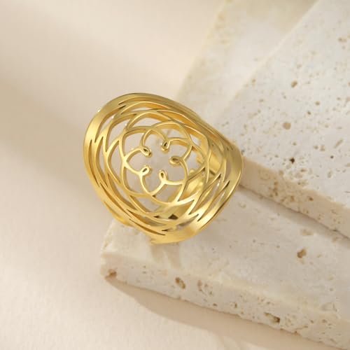 TEAMER Adjustable Filigree Flower Ring Stainless Steel Elegant Flower Open Ring Wedding Band Ring for Women 5