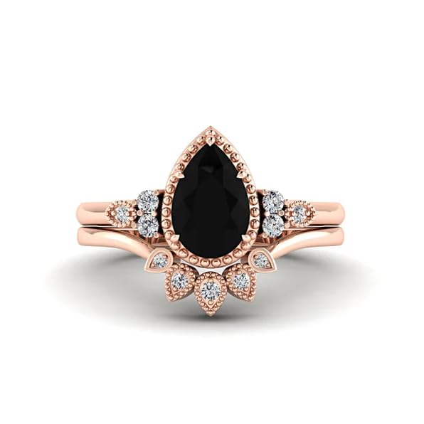 Black Wedding Ring Set for Women S925 Sterling Silver Personalized Pear Cut Black Onyx Ring Set Bridal Engagement Band Gift for Mather’s Day Her