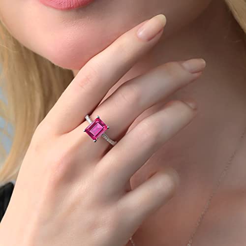 Gem Stone King 925 Sterling Silver Customized and Personalized 10X8MM Emerald Cut Gemstone Birthstone and White Created Sapphire Name Engraved Engagement Ring For Women 6