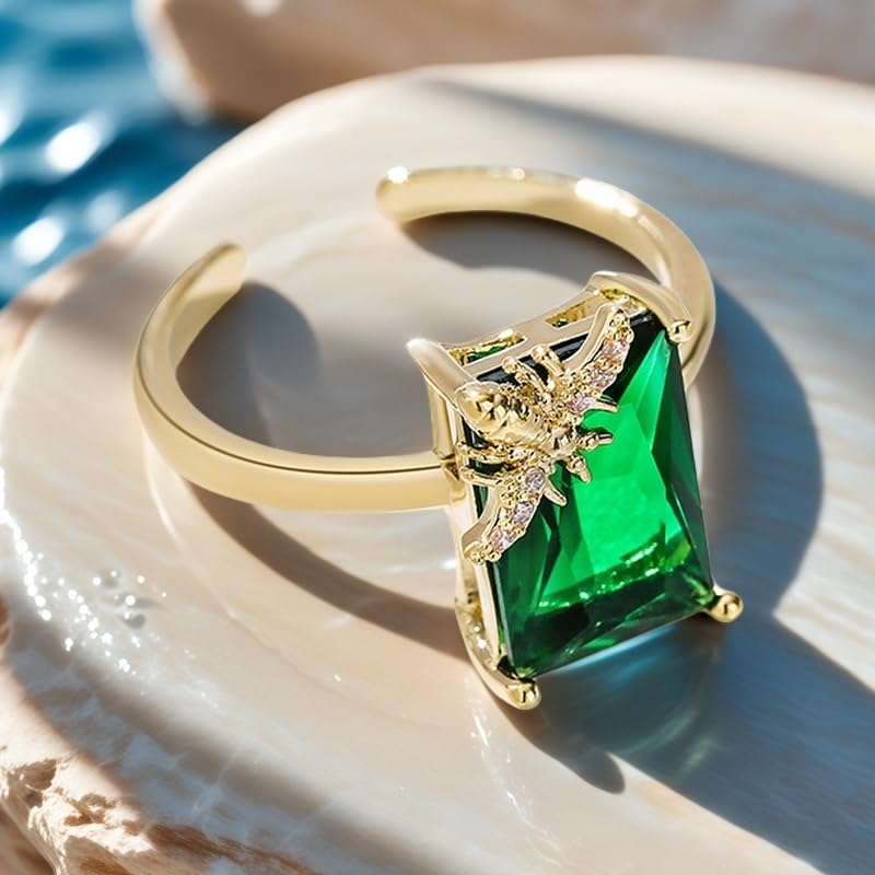 Why Choose Emerald Green CZ Square Statement Ring for Women 14K Gold Plated Cute Honeybee Bee Rectangle Crystal Adjustable Open Finger Bands Stacking Wedding Engagement Promise Rings Delicate Jewelry for Bride?