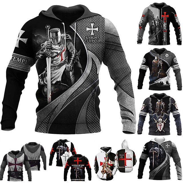 Men's Graphic Knights Templar Cross Hoodie Hoodies Sweatshirt Designer Casual Long Sleeve Hooded Work Daily Weekend White+Dark Gray light gray & black Print Spring &  Fall Designer 11
