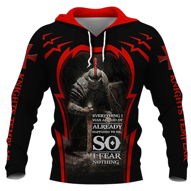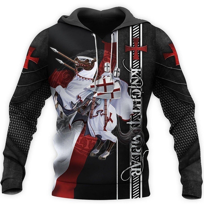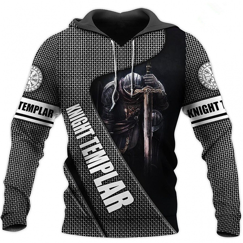 Men's Graphic Knights Templar Cross Hoodie Hoodies Sweatshirt Designer Casual Long Sleeve Hooded Work Daily Weekend White+Dark Gray light gray & black Print Spring &  Fall Designer 27