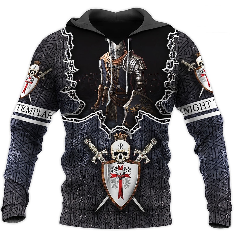 Men's Graphic Knights Templar Cross Hoodie Hoodies Sweatshirt Designer Casual Long Sleeve Hooded Work Daily Weekend White+Dark Gray light gray & black Print Spring &  Fall Designer 31
