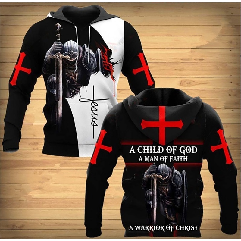 More information about Men's Graphic Knights Templar Cross Hoodie Hoodies Sweatshirt Designer Casual Long Sleeve Hooded Work Daily Weekend White+Dark Gray light gray & black Print Spring & Fall Designer
