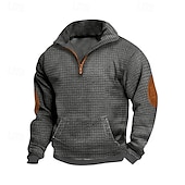 More information about Men's Waffle Sweatshirt Sweatshirt Black Navy Blue Khaki Dark Gray Gray High Neck Standing Collar Plain Zip Up Front Pocket Sports & Outdoor Casual Daily Streetwear Cool Sportswear Spring & Fall