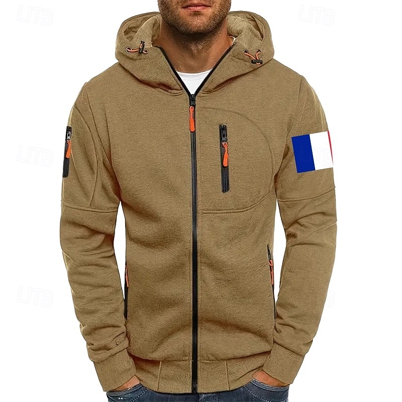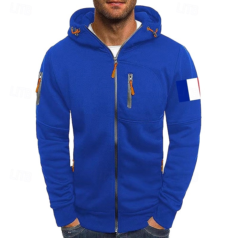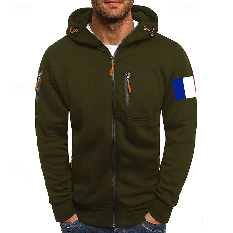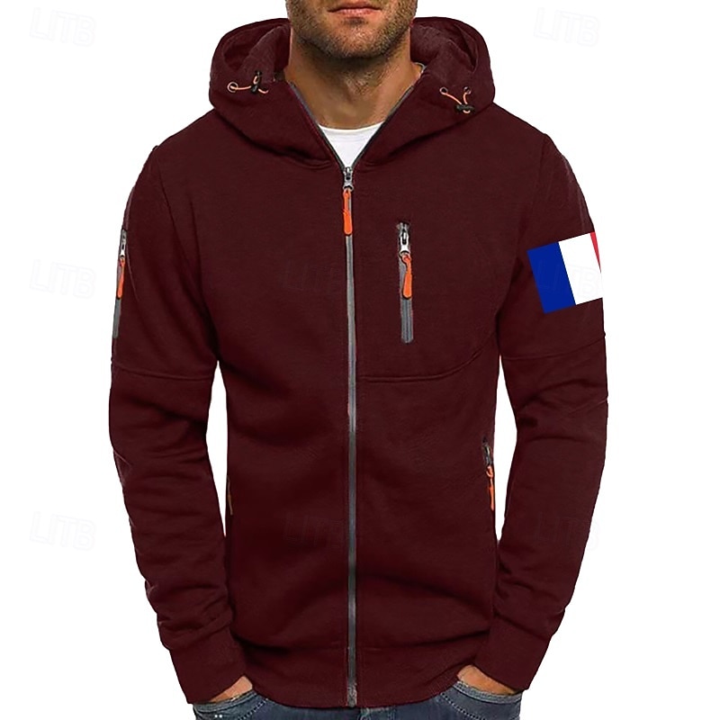 More information about Men's Hoodie Full Zip Hoodie Sweat Jacket Black White Wine Army Green Navy Blue Hooded Plain Zip Up Patchwork Front Pocket Sports & Outdoor Casual Daily Streetwear Cool Sportswear Fall & Winter