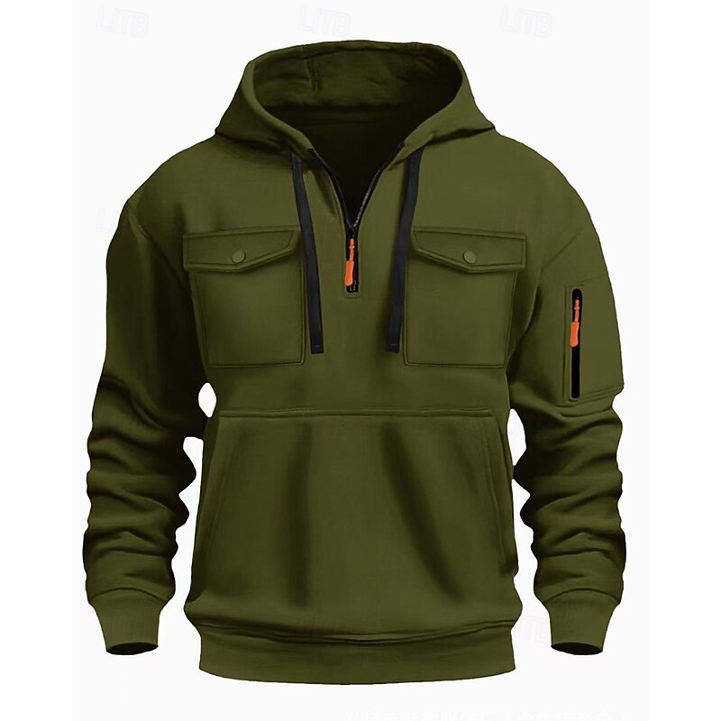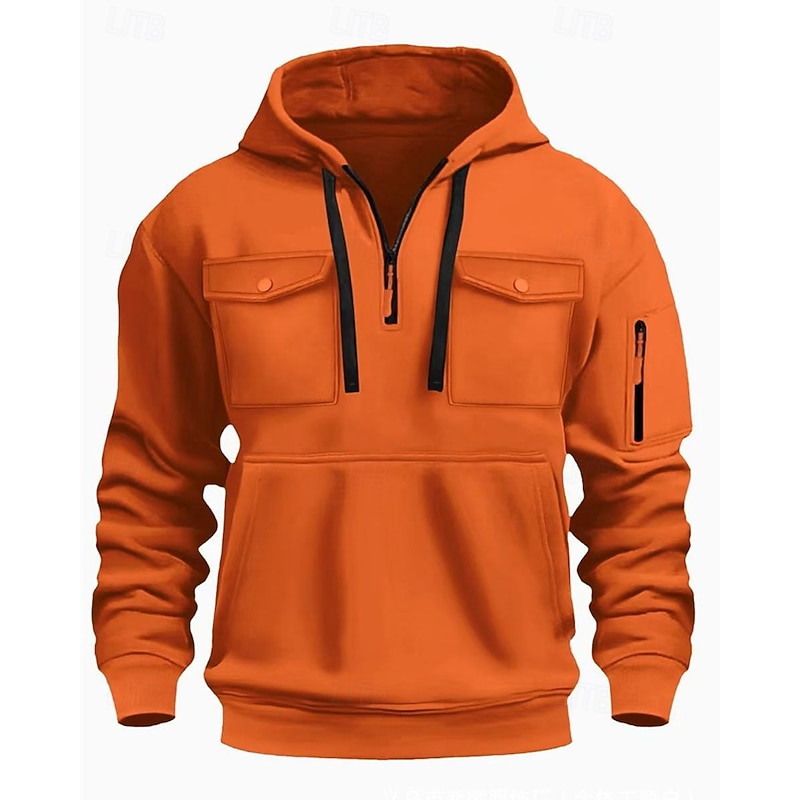More information about Men's Hoodie Quarter Zip Hoodie Black White Wine Army Green Red Hooded Plain Pocket Quarter Zip Sports & Outdoor Daily Holiday Polyester Streetwear Basic Casual Spring Fall Clothing Apparel Hoodies