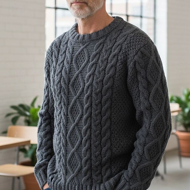 Why Choose Men's Sweater Pullover Sweater Jumper Ribbed Cable Knit Cropped Knitted Crew Neck Modern Contemporary Daily Wear Going out Clothing Apparel Fall & Winter Black Dark Navy M L XL?