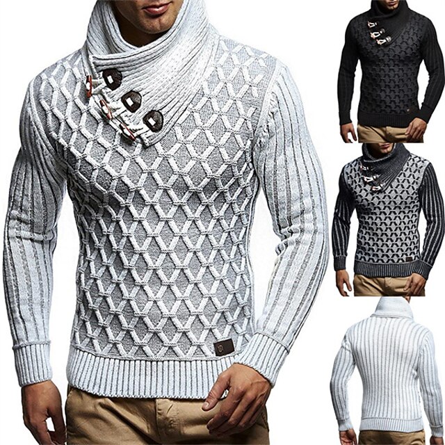 HOT ! Men's Sweater Pullover Sweater Jumper Turtleneck Sweater Cable Knit Button Knitted Geometric Turtleneck Stylish Vintage Style Clothing Apparel Fall Winter White / Black Black S M L
