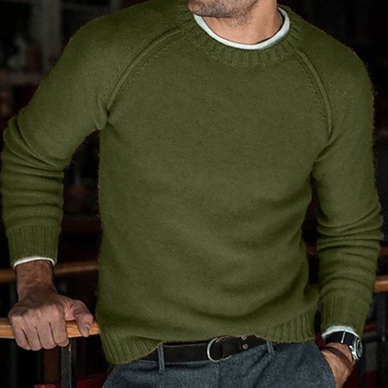 More information about Men's Sweater Pullover Knit Knitted Solid Color Crew Neck Stylish Vintage Style Daily Clothing Apparel Winter Fall Green Black S M L