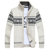 Why Choose Men's Sweater Cardigan Sweater Zip Sweater Ribbed Knit Print Knitted Color Block Standing Collar Stylish Warm Ups Work Going out Clothing Apparel Winter Green Dark Blue M L XL?