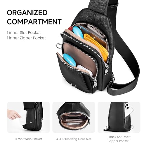 befen Anti Theft Genuine Leather Sling Bag for Women RFID Small Crossbody Bag Chest Bag Leather Fanny Packs for Travel 4