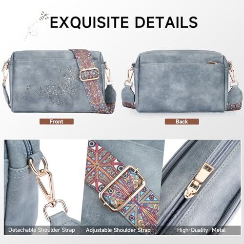 Crossbody Bags for Women, Vegan Leather Small Crossbody Purse Butterfly Shoulder Handbags with Wide Strap