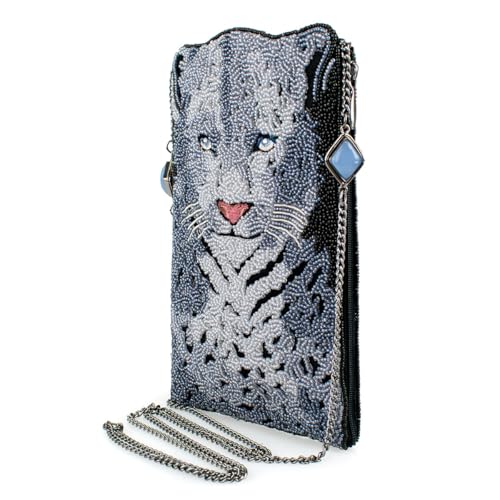 HOT ! Mary Frances Snow Leopard Beaded Crossbody Cell Phone Bag Animal Pattern Evening Clutch Purse, Grey/Black