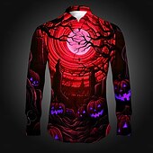 More information about Halloween Men's Pumpkin Grimace Halloween Costumes Shirt Button Up Shirt Long Sleeve Horror Dark Party Evening Wear Fall Winter Spring & Summer Turndown Shirt Collar Button Up 3D Print Black Red Blue