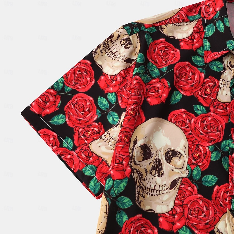 More information about Halloween Men's Skulls Flowers Shirt Summer Shirt Casual Shirt Short Sleeves Vintage Horror Vacation Daily Wear Theme Party Spring & Summer Lapel Print White+Black Black White Red Blue
