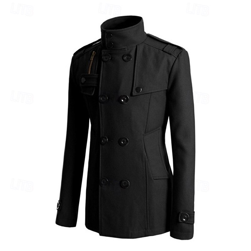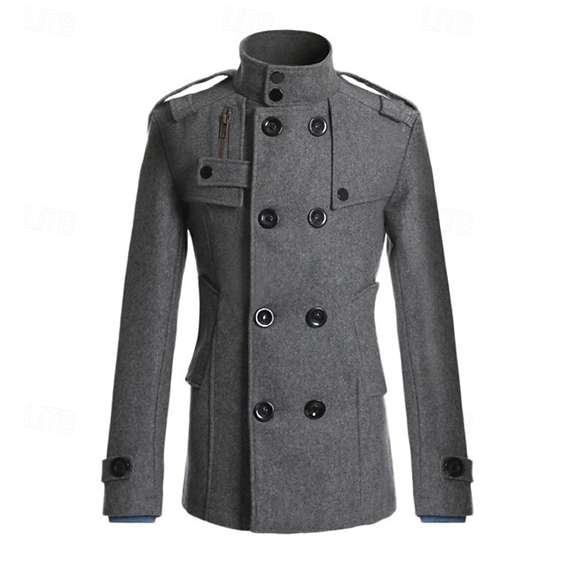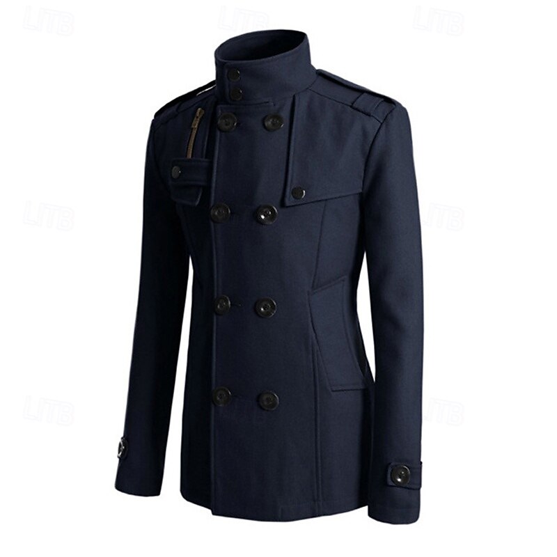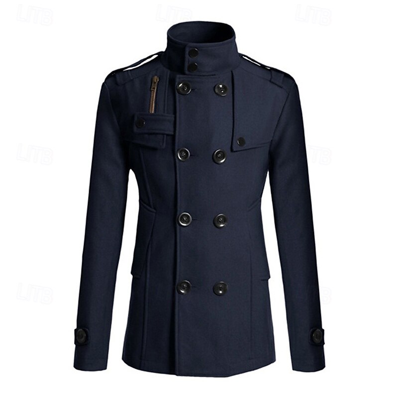 Highlights [Fabric] Crafted from durable polyester, this men’s peacoat trench coat ensures thermal warmth during the fall and winter seasons. The fabric's sturdy nature offers both comfort and longevity, making it a reliable choice for cold weather. [Fit] Designed with a regular outerwear length, the coat provides a tailored fit that complements the male form while allowing ease of movement. Its classic double-breasted style adds a timeless elegance to any outfit, highlighting the wearer’s silhouette elegantly. [Design Highlights] This coat features a sophisticated stand collar for extra warmth and a distinguished look. Its double-breasted placket is complemented by large black buttons, while the trench coat design includes functional pockets, shoulder epaulets, adjustable sleeves, and a front chest pocket accented with a flap and zipper, enhancing its stylish, military-inspired aesthetic. [Occasions] Perfectly suited for vacations, daily wear, and going out, this versatile coat is ideal for both casual and fashion-forward settings. Whether attending a formal event or enjoying a casual outing, this coat adds a refined touch to any ensemble. [Size Range] Available in a range of sizes, from S to XXL, this coat caters to different body types, ensuring a suitable fit for everyone seeking style and warmth in cooler climates. The color options include Black, Gray, Khaki, and Navy Blue, allowing a choice of classic and versatile shades to match any wardrobe. Perfect for everyday use. High quality materials and excellent craftsmanship ensure long-lasting durability.