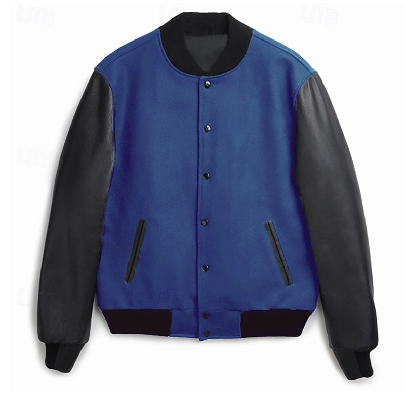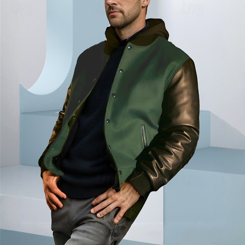Why Choose Men's Faux Leather Jacket Biker Jacket Varsity Jacket Vacation Daily Windproof Color Block Fall Winter Color Block Fashion Classic Stand Collar Regular Yellow Navy Blue Green Jacket?