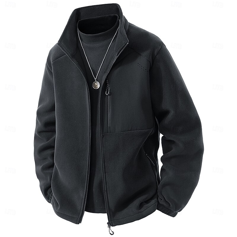 More information about Men's Outdoor Jacket Fleece Jacket Formal Outdoor Windbreaker Pocket Color Block Fall Winter Solid Color Active Neutral High Neck Regular Dark Gray Black Navy Blue Dark Green Coffee Jacket