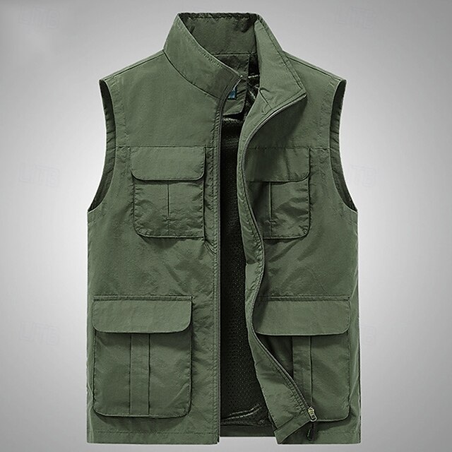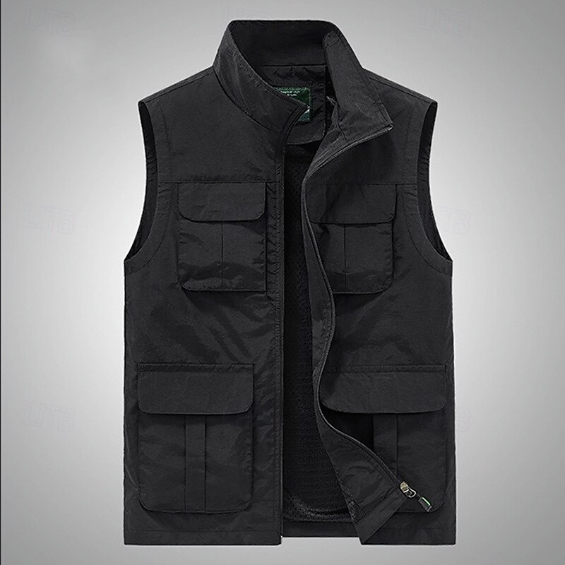 Highlights [Fabric]: Crafted from a high-quality polyester blend, this men's vest is both breathable and durable, offering comfort during extended wear. The fabric's smooth finish enhances its appeal, making it suitable for various occasions. [Fit]: The vest features a regular fit with a sleeveless design, providing effortless mobility and the capability to be easily layered. Its straight-cut design accommodates different body types, ensuring a relaxed and comfortable fit. [Design Highlights]: This utility vest boasts a functional and stylish design with multiple mesh pockets that provide convenient storage for tools and personal items. The zippered front ensures easy wear and removal, while the stand collar adds a sophisticated touch and protection against the wind. [Occasions]: Ideal for a range of activities such as fishing, hiking, and daily casual wear, this vest is perfect for spring and summer outings. Whether you're on a date or enjoying a vacation, it merges functionality with style seamlessly. [Size Range]: Available in a wide range of sizes from S to 5XL, this vest caters to a diverse audience, ensuring a suitable fit for most. The color options include Black, Dark Blue, Army Green, and Khaki, providing versatile choices to match any wardrobe. Perfect for everyday use. High quality materials and excellent craftsmanship ensure long-lasting durability.