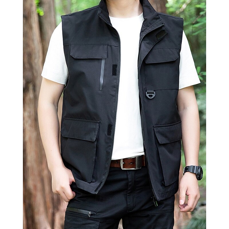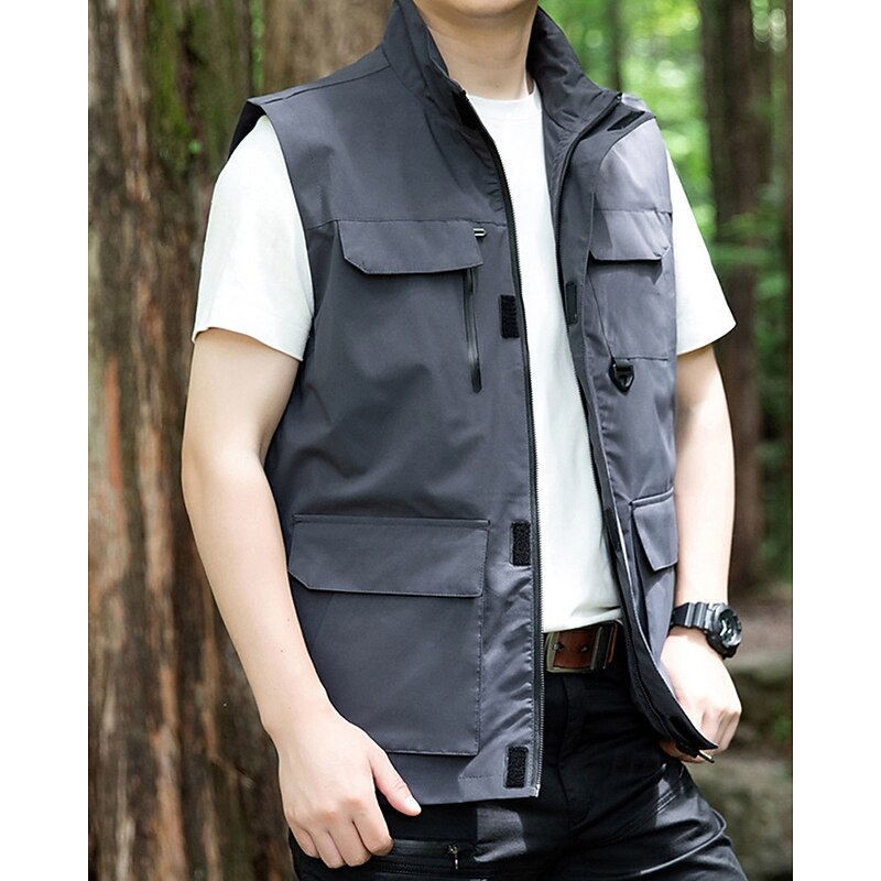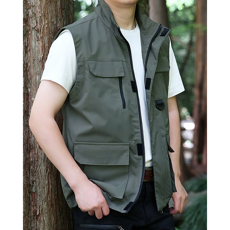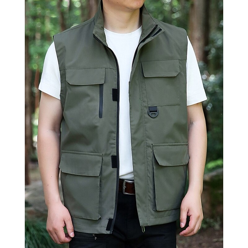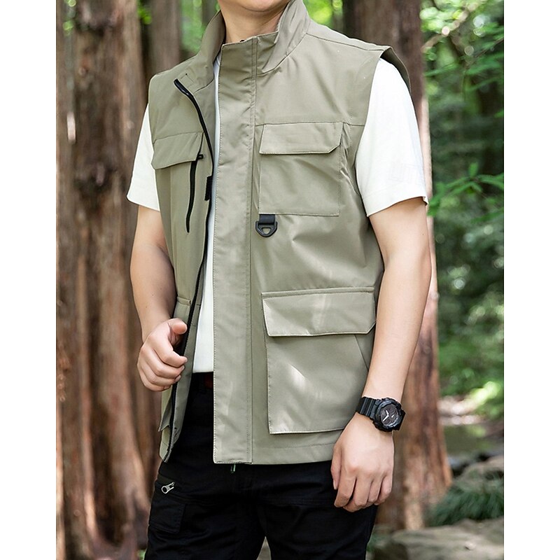 Men's Vest Gilet Outdoor Daily Fashion Casual Spring Fall Pocket Polyester Comfortable Plain Zipper Stand Collar Regular Fit Black Red Blue Khaki Vest 10
