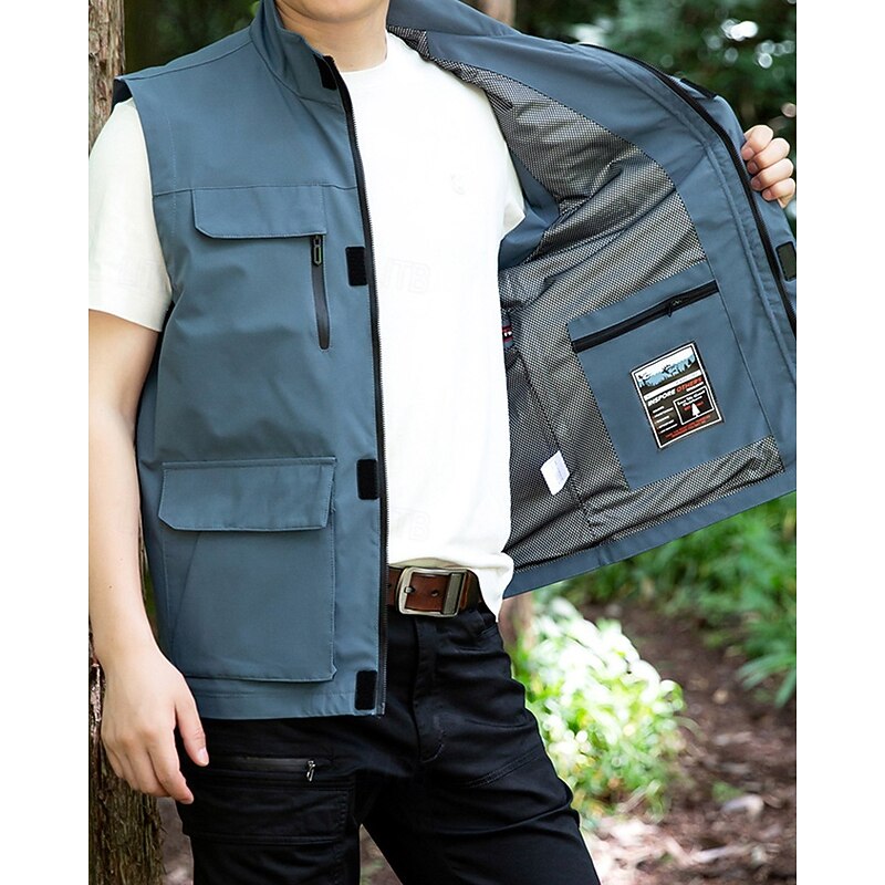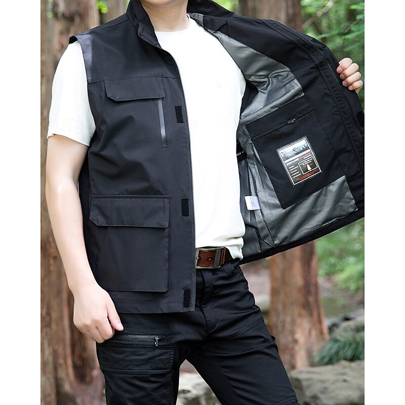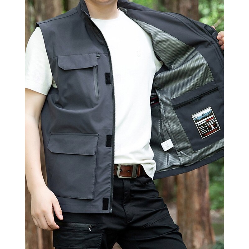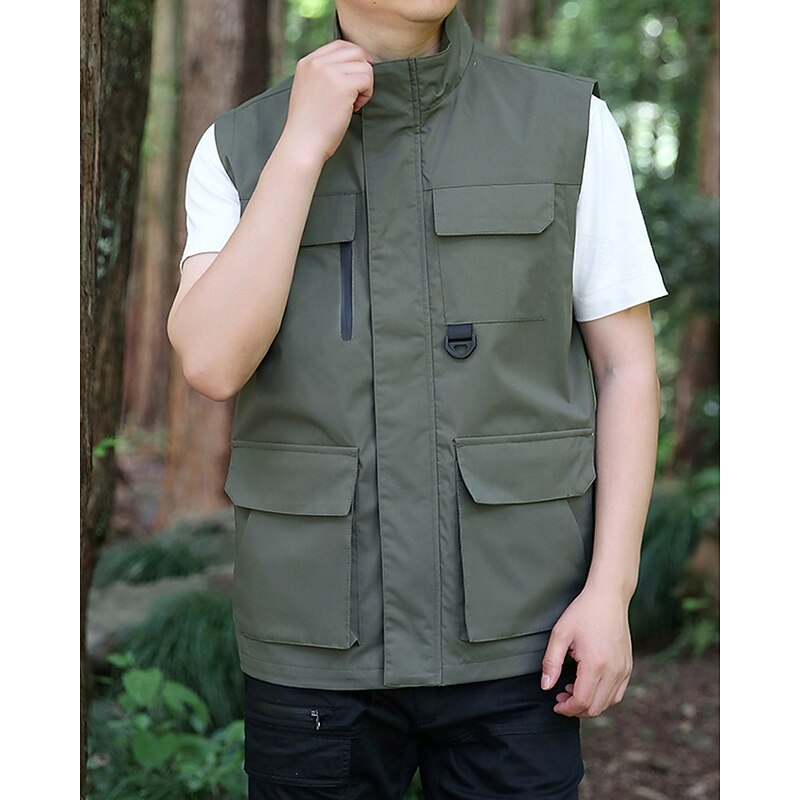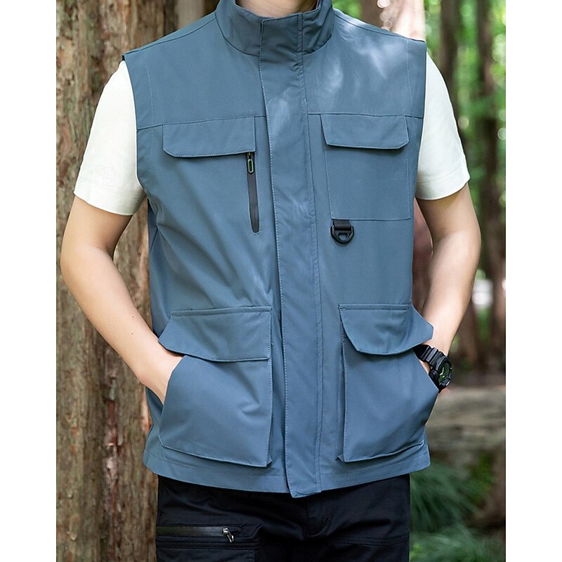 Men's Vest Gilet Outdoor Daily Fashion Casual Spring Fall Pocket Polyester Comfortable Plain Zipper Stand Collar Regular Fit Black Red Blue Khaki Vest 10