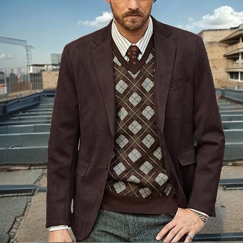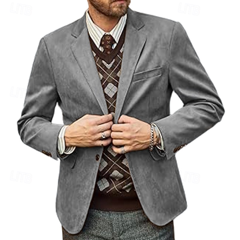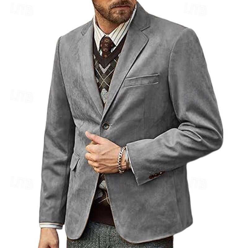 More information about Men's Blazer Business Cocktail Party Wedding Party Fashion Casual Spring Fall Polyester Plain Pocket Buttons Comfortable Single Breasted Blazer Black khaki Light Grey Coffee