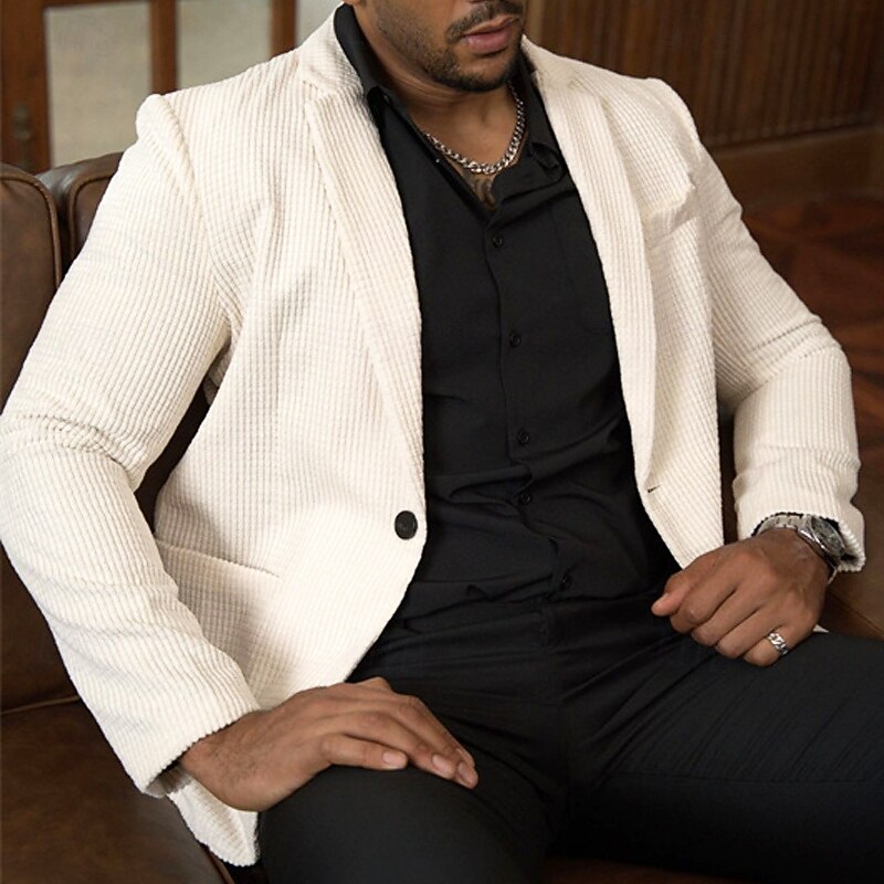 HOT ! Men's Graduation Waffle Blazer Blazer Business Cocktail Party Wedding Party Fashion Casual Spring & Fall 65% Cotton Plain Pocket Buttons Comfortable Single Breasted Blazer White