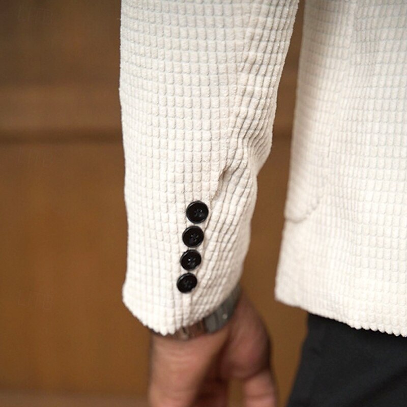 Men's Graduation Waffle Blazer Blazer Business Cocktail Party Wedding Party Fashion Casual Spring &  Fall 65% Cotton Plain Pocket Buttons Comfortable Single Breasted Blazer White 1