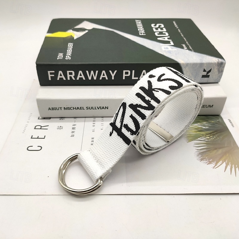 Men's Belt Waist Belt Black White Canvas Alloy Durable Adjustable Letter Outdoor Daily 2