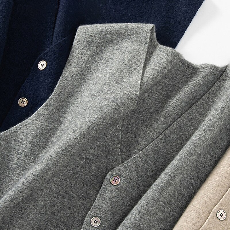 More information about Men's 100% Cashmere Cardigan Vest Knit Button Up V Neck Knitwear Elegant School Formal Clothing Apparel Spring Fall Black Navy Blue S M L