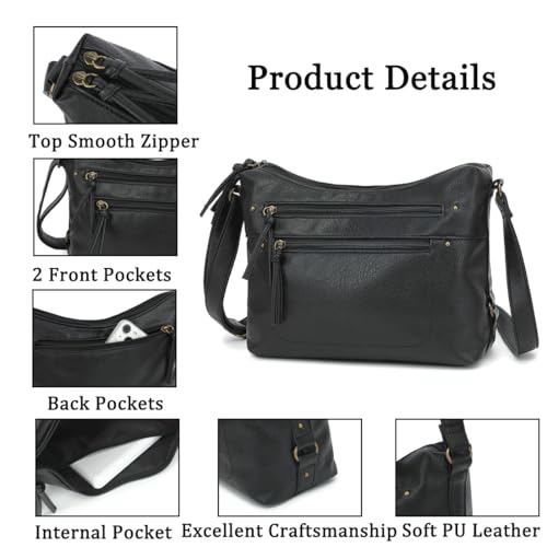 Medium Crossbody Bags for Women, Vegan Leather Crossbody Purse with Milti-pocket Trendy Shoulder Handbag for Travel