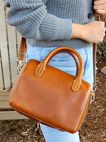 leatherMade in the USA and ImportedPremium Genuine Leather – Made from rich tan-brown cowhide leather, this concealed carry purse combines luxury, durability, and timeless elegance.Discreet Concealed Carry Compartment – A side-access CCW pocket allows for quick, secure, and inconspicuous firearm access, designed for both safety and convenience.Versatile Carrying Options – Carry it gracefully from the wrist with the 3.5” handle drop or wear it as a crossbody with the adjustable 49”- 53” shoulder strap for hands-free comfort.Compact Yet Spacious Interior – Though sleek in appearance, the suede-lined interior offers ample room for essentials, making it perfect for everyday use or travel.Perfect Size for Style & Security – Measuring 9.5” x 7.5” x 6.5”, with a CCW compartment of 7.5” x 10”, this bag is designed for those who prioritize fashion, convenience, and personal safety. Perfect for everyday use. High quality materials and excellent craftsmanship ensure long-lasting durability.