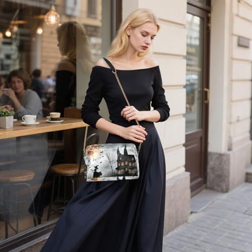 HOT ! Haunted House Witch Halloween Crossbody Bags for Women, Small PU Leather Crossbody Purses and Handbags for Shopping Travel