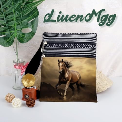 War Horse Messenger Bag Small Ethnic Pattern Printed Adjustable Strap Crossbody Zipper Bag War Horse Phone Bag Wallet Cute Shoulder Handbag for Women
