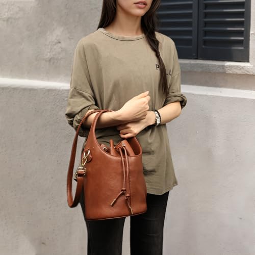 Women's Drawstring Bucket Bag Crossbody Purse Faux Leather Hobo Handbag with Adjustable Strap for Everyday Essentials 5