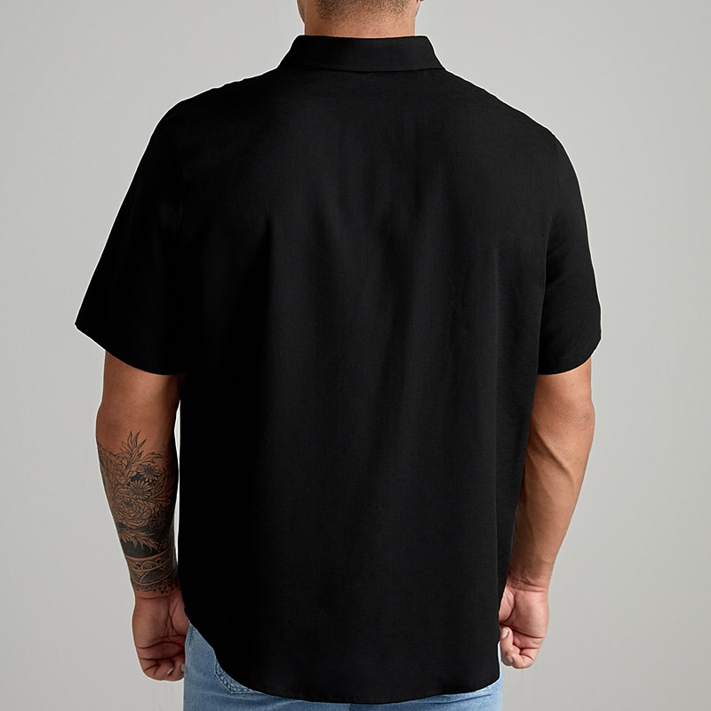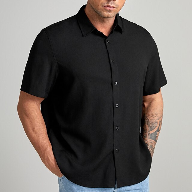 Highlights [Fabric] : Crafted from high-quality polyester, this men's shirt ensures a comfortable and breathable wear for any season. The lightweight fabric is perfect for keeping you cool in summer months while maintaining a polished look. [Fit] : Designed with a standard fit, this shirt features a classic turndown collar and a button-up front. The structured collar and neatly aligned black buttons create a sleek and polished appearance, suitable for a range of occasions. [Design Highlights] : This shirt boasts a minimalist and versatile design, with its solid black color offering a timeless and adaptable style. The short sleeves provide ease of movement and comfort, making it an ideal choice for warm weather. Its retro vintage appeal adds a subtle modern touch to any outfit. [Occasions] : Ideal for vacations, outdoor adventures, and casual gatherings, this shirt is a versatile addition to your wardrobe. It pairs effortlessly with a variety of bottoms, from jeans to chinos, making it perfect for a stylish and effortless look in any setting. [Size Range] : Available in a wide range of sizes from L to 6XL, this shirt is designed to accommodate a variety of body types, ensuring a comfortable fit for everyone.