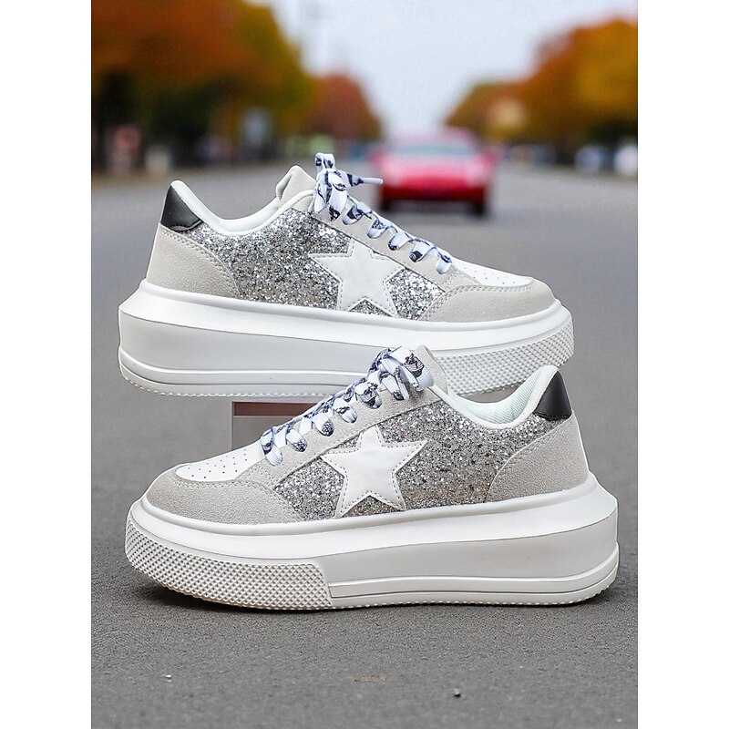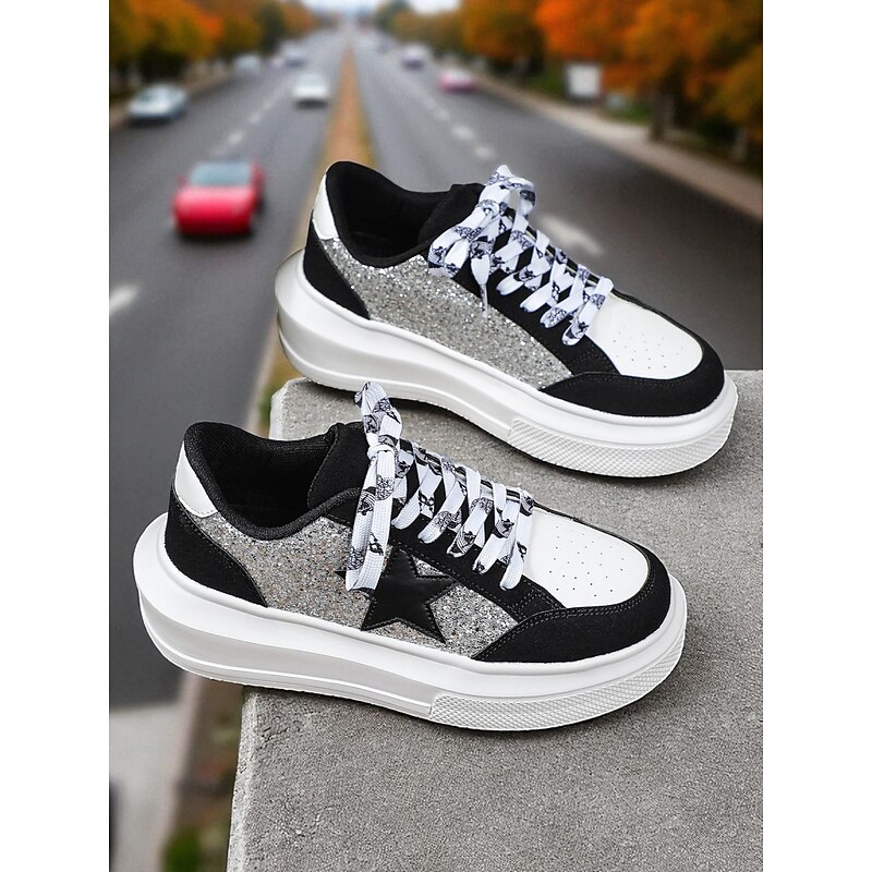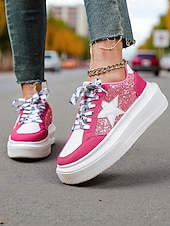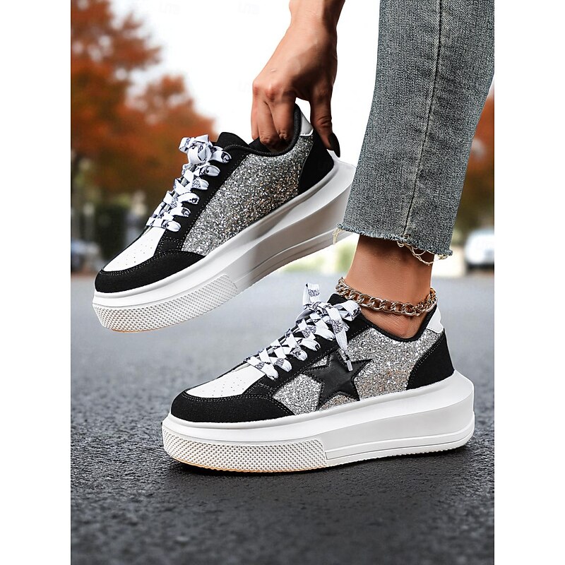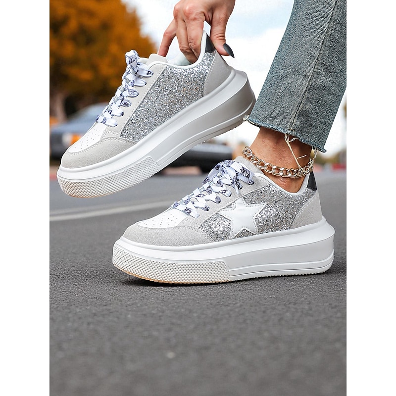 This Women's Glitter Star Platform Sneakers - Red and White Chunky Lace-Up Casual Shoes with Sparkly Sequin Detail for Street Style, Travel & Festivals combines elegant design with practical functionality. Every detail has been carefully considered to ensure you get the best possible experience. The high quality construction means this product will serve you well for years to come.