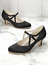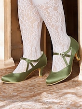 More information about Women's Sage Green Satin T-Strap Heels-Vintage Gatsby Mid Heel Pumps with Buckle Closure, Elegant Shoes for Weddings & Ballroom Dance