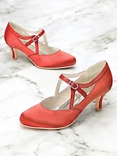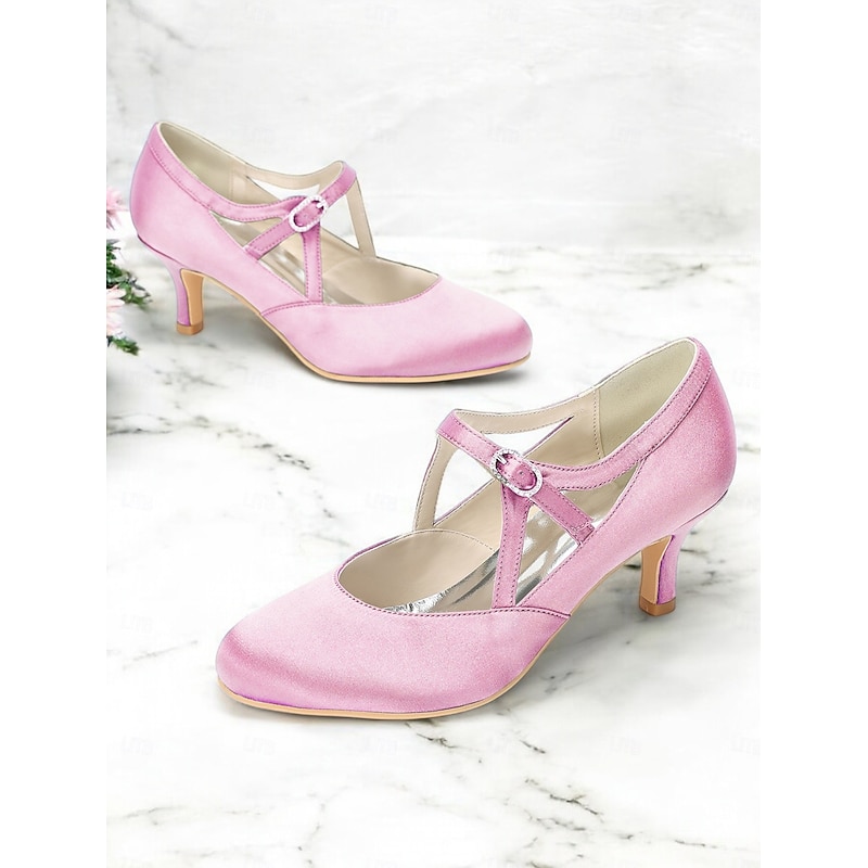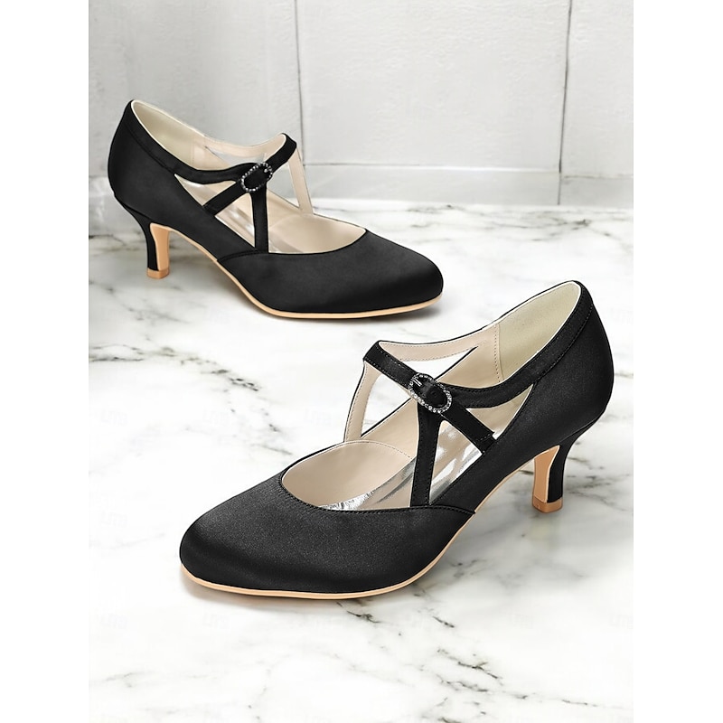 Highlights - Luxurious satin upper - Elegant synthetic leather lining - Eye-catching buckle embellishment - Stylish stiletto heel - Comfortable round toe shape - Durable rubber outsole - Perfect for daily wear