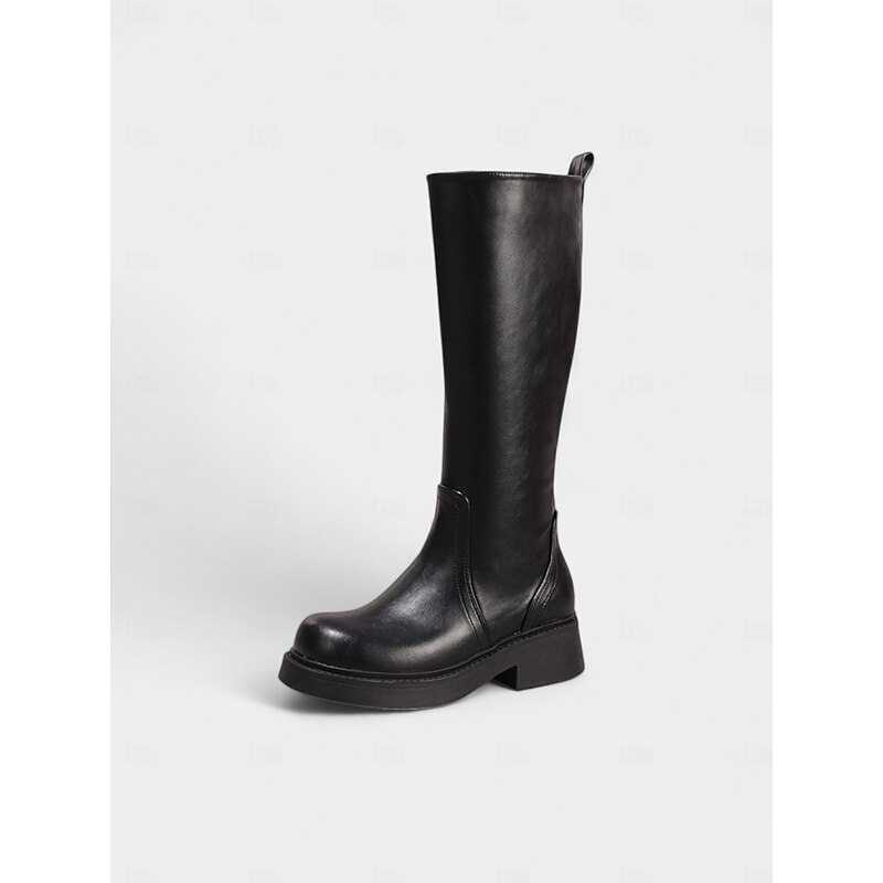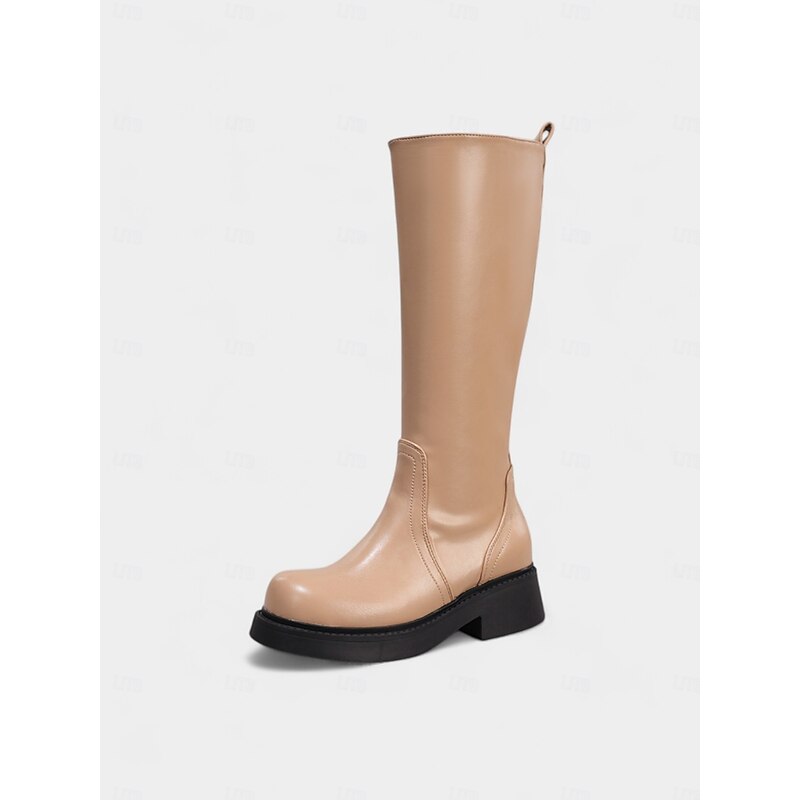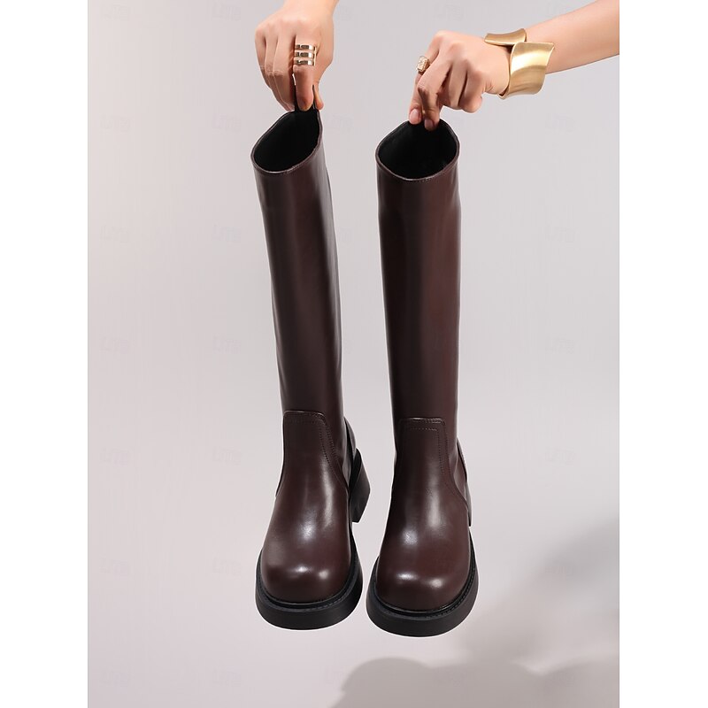 HOT ! Women's Brown Knee High Faux Leather Boots – Modern Style Low Heel Riding Boots for Fall Fashion, School and Outdoor Wear