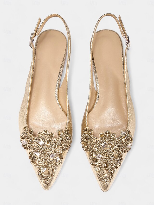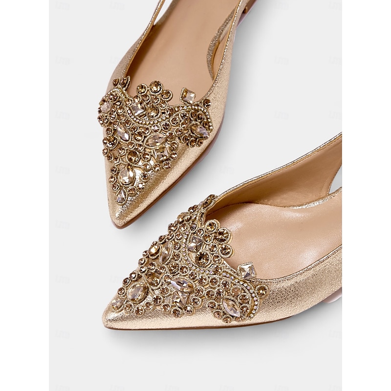 Why Choose Women's Gold Embellished Pointed Toe Slingback Flats with Crystal Detailing - Luxurious Bridal Shoes for Weddings and Special Events?
