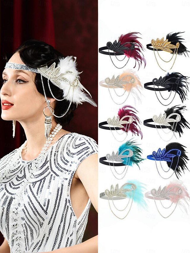 $18.99 - Women's 1920s Gatsby Flapper Headband - Rhinestone Feather Hair Accessory with Chains for Retro Themed Parties and Roaring Twenties Events 2025. Shop for cheap Halloween Accessories online? Buy at lightinthebox.com on sale today!
